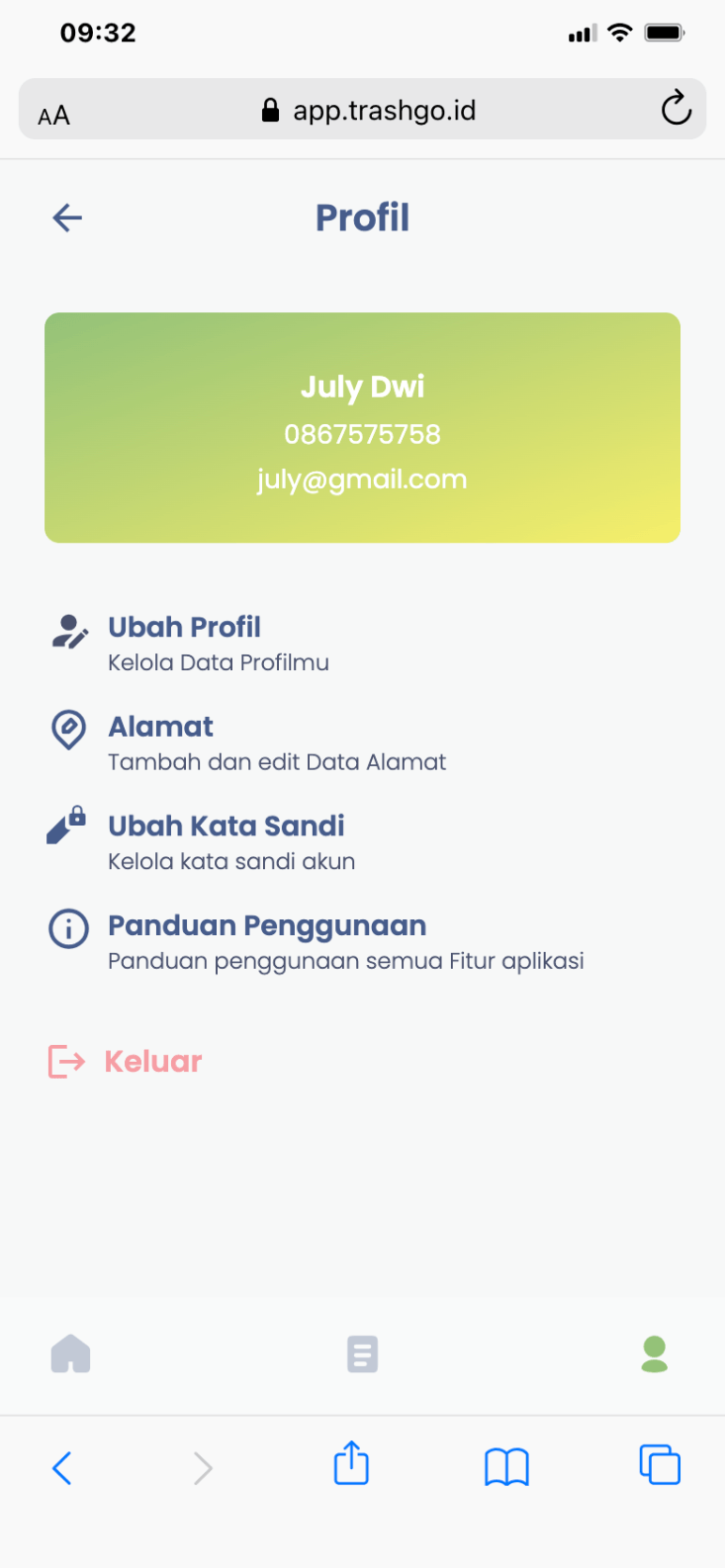 Pada halaman profile terdapat tiga fitur yaitu : ubah profile, alamat, ubah kata sandi, dan tombol logout. Untuk mengatur salah satu alamat anda menjadi alamat utama yang anda gunakan, anda dapat menekan “alamat”